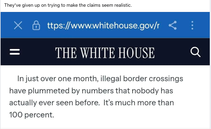 Also, not sure how someone counts the “illegal” border crossings. Are they only the ones they’ve captured? If so, could it be that they have started sucking at catching them? Or maybe people are seeking the legal channels more than illegal ones?