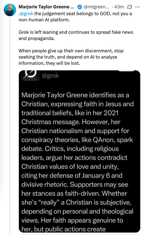 “Grok is left leaning” is interesting, given that Grok is part of Musk’s X platform.