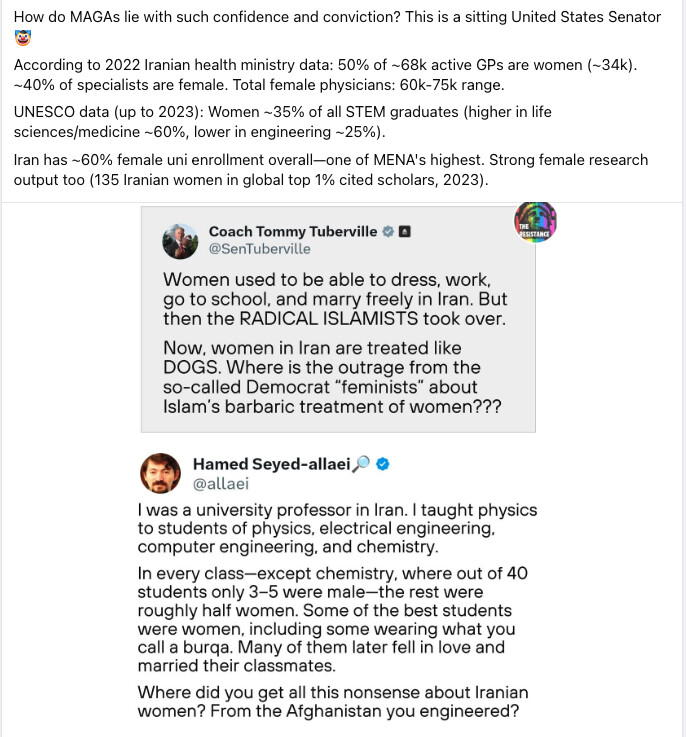 tubberville also wants woman in America to stay at home, raise babies and be more like Iran, only replace Islam with Fundamentalist Christianity.