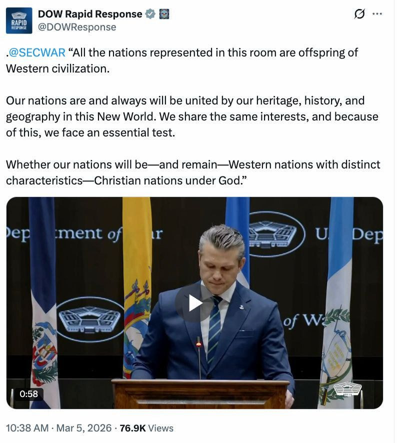 Apparently we are dropping the Judeo- part from Judeo-Christian. Which at least is honest in that Republicans started using it in the 60s not to be inclusive, but rather to exclude Islam.