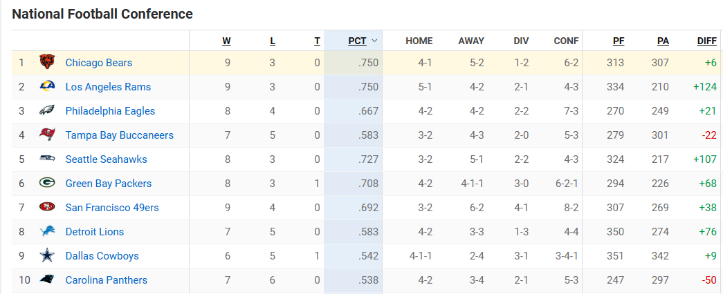 Any team that has won 9 games is good. I think the Hawks are in the top 5 of NFL teams but they have some big matches down the stretch that will test their standing. They are a good road team so winning home field advantage in the playoffs is not critical.
