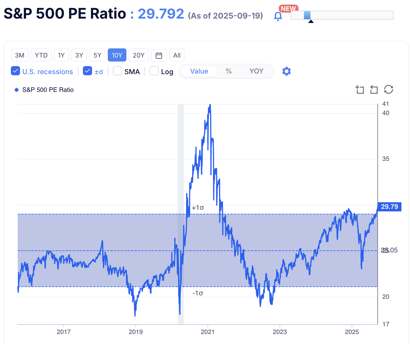 If looking at S&P500 PE ratio, it’s hot but not super hot. It’s back to where it was before the big tariff scares -