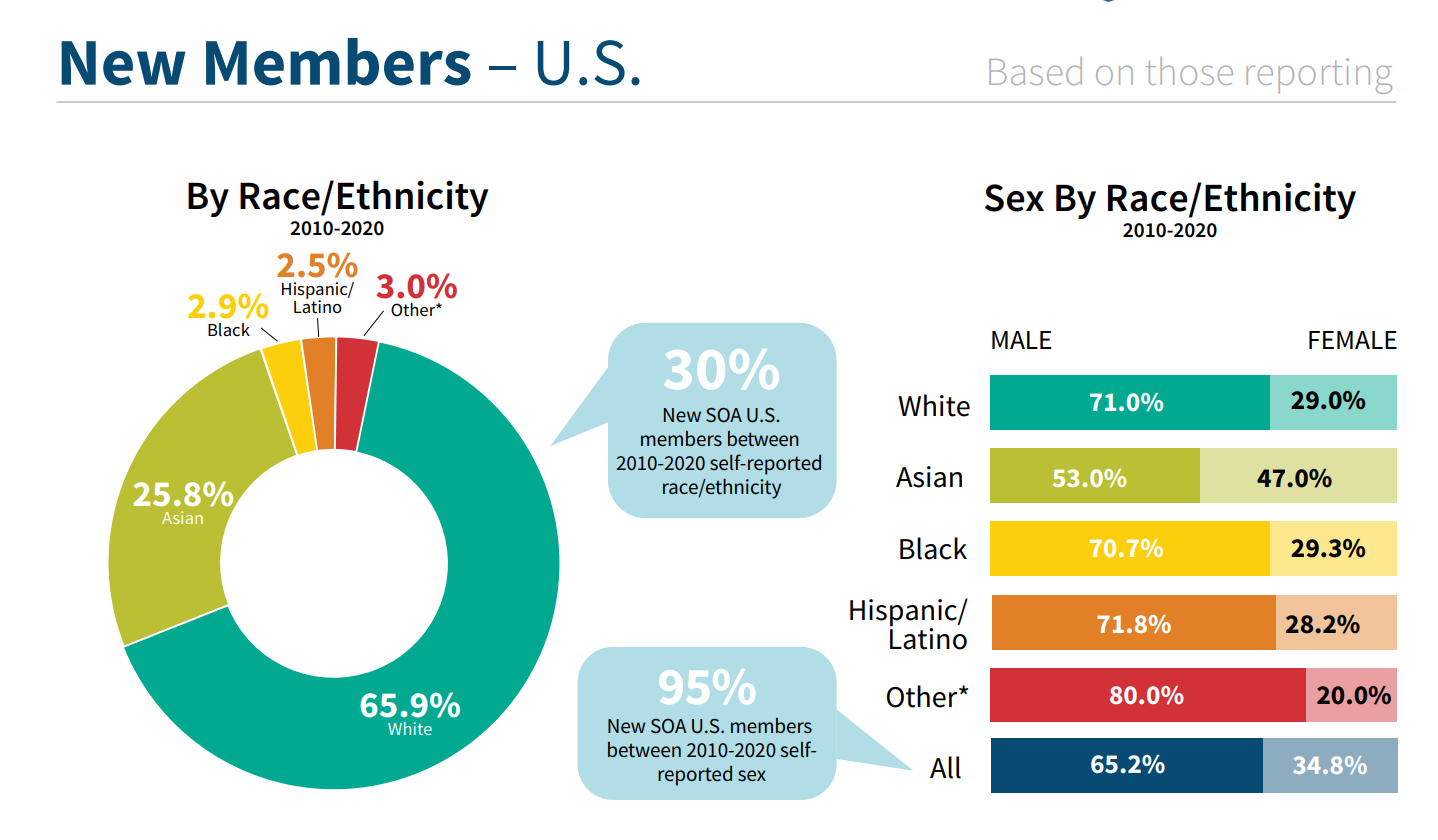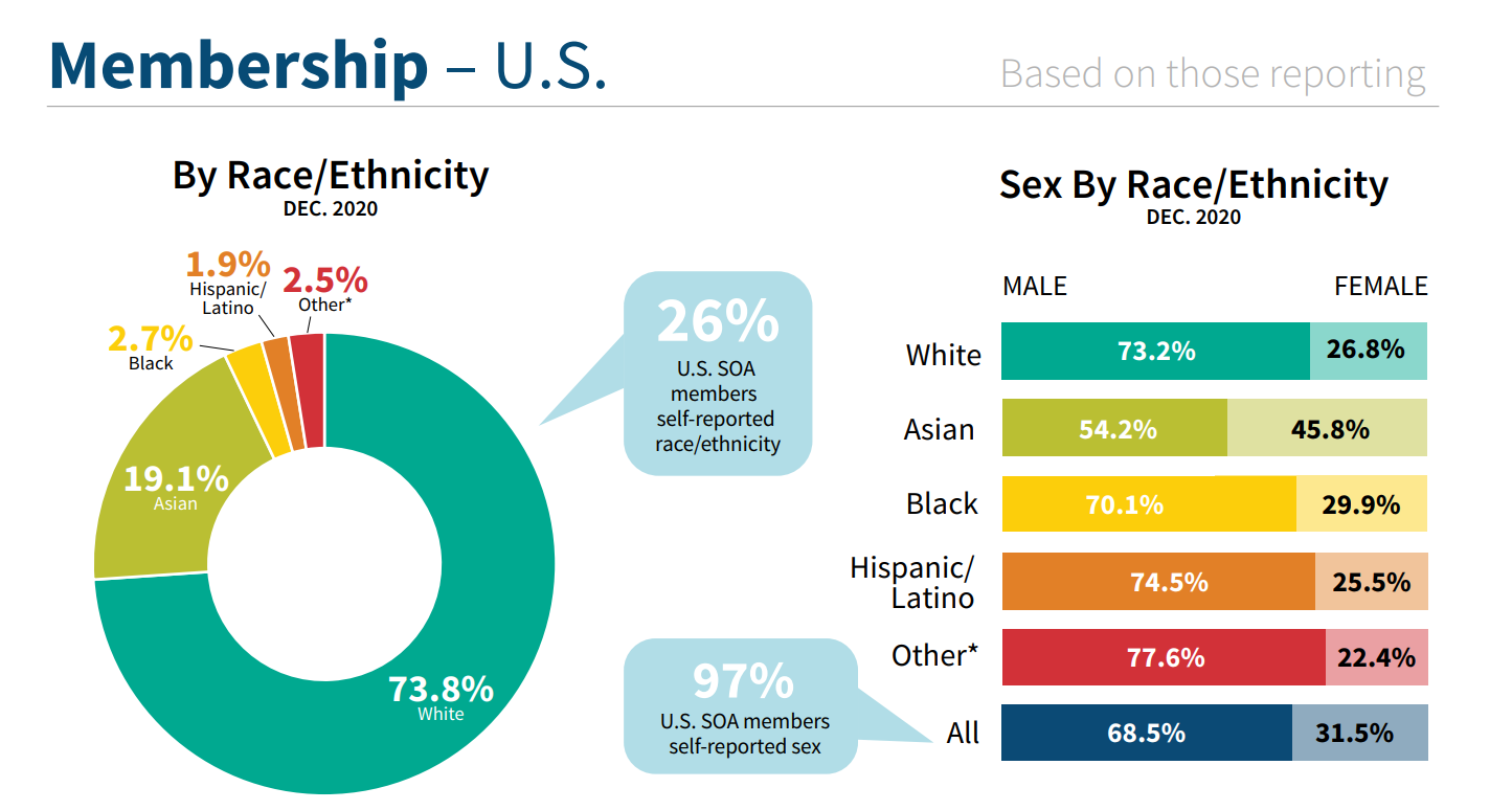 I’m surprised the split is only 1/3 women. My personal experience would be that women are well represented - at least half the actuary folks I know are women. But, maybe it’s an old-school thing where new entrants are slowly tilting the numbers over to 50-50.