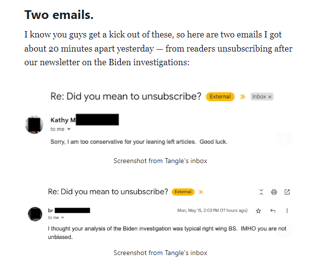 “The whole point of Tangle is to read views you don’t agree with,” I kept thinking to myself as I read the feedback. “Why would you unsubscribe because I said something you didn’t agree with?”