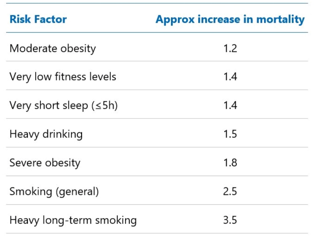From a Linkedin discussion regarding mortality impacts of various behaviors. You could potentially have several of these going at the same time as well.