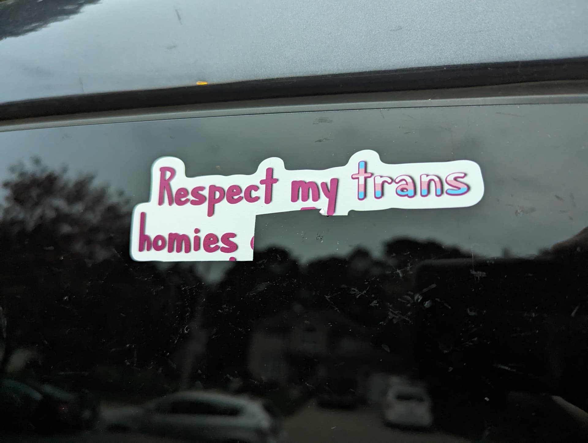 It was a compromise, my spouse didn’t want me to put the full sticker on. The rest of it says ‘or I’ll identify as a f***** problem’.
