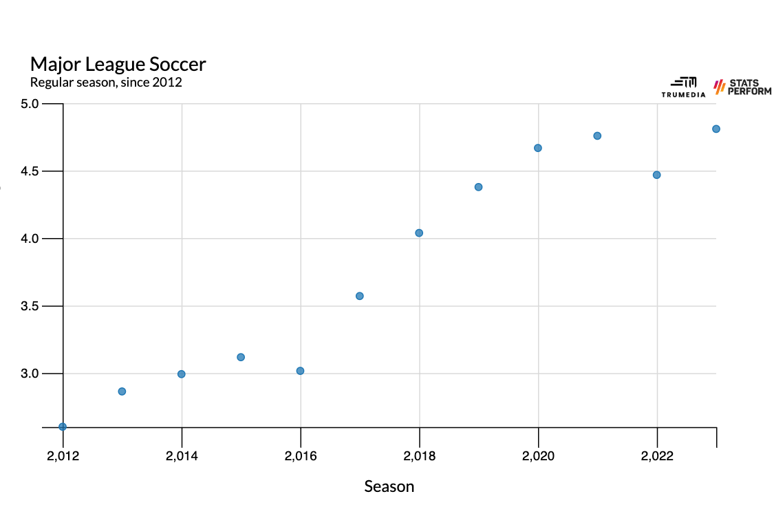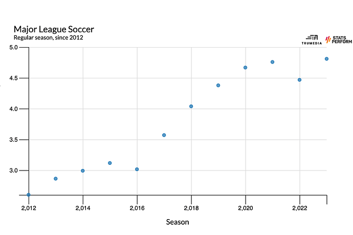 Rather than the high press cannibalizing the ability to pass – or vice versa – both aspects, which feel like somewhat fundamental building blocks for an interesting soccer product to watch, have risen up together. Yet despite all of that, MLS still hasn’t really risen in its overall standing in relation to the rest of the world. Since 2009, the league has sat somewhere between 29th- and 34th-best in the world, according to Twenty First Group.