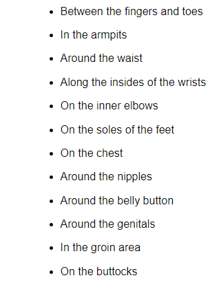 My understanding is that bed bug bites tend to go right along a blood vessel… there will be rows that correspond to blood vessels.