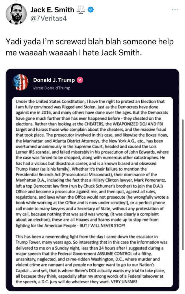 Jack Smith is besieging Trump.