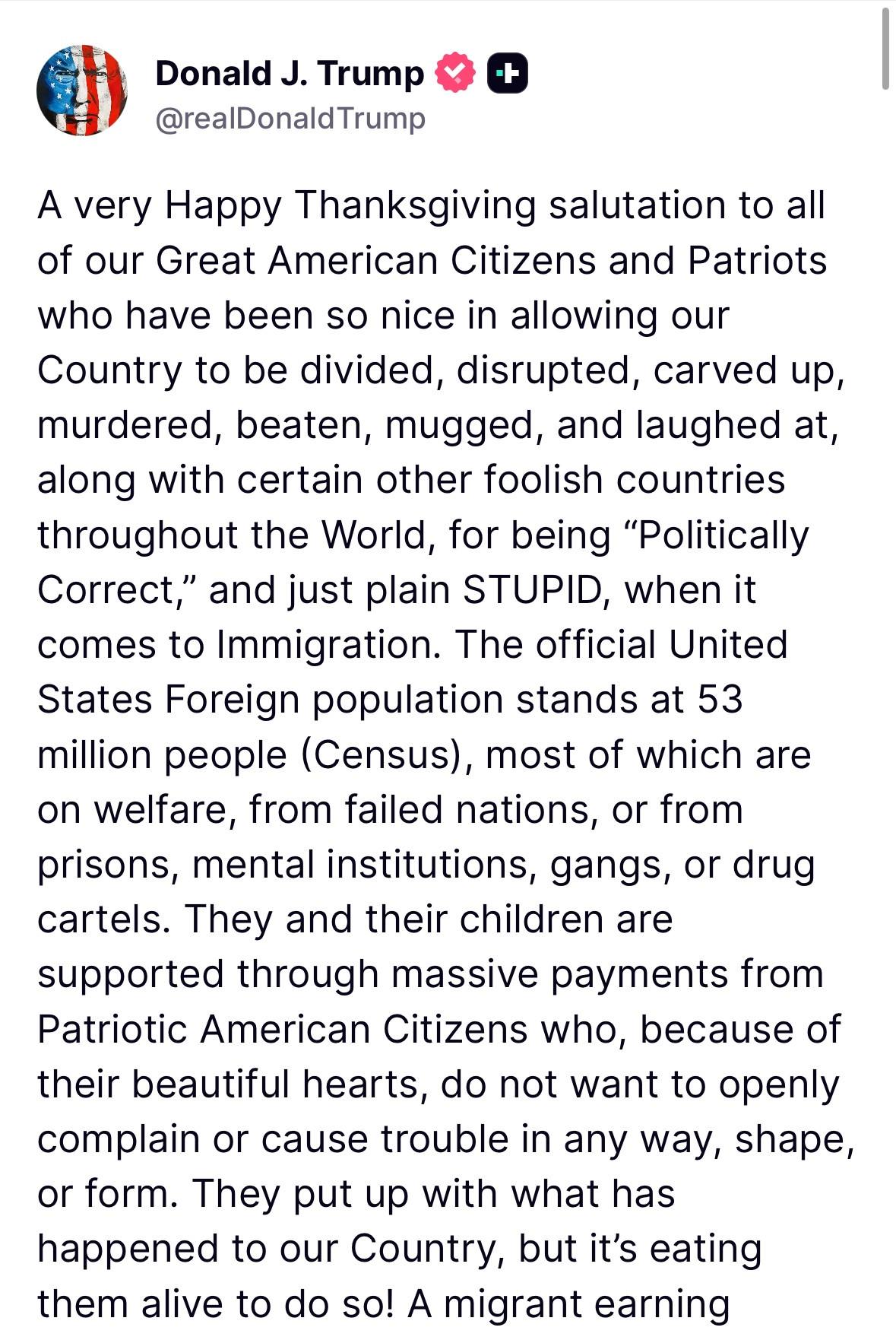 “Because they let him in. Are you stupid? Are you a stupid person?” Trump fired back. “Because they came in on a plane along with thousands of other people that shouldn’t be here. And you’re just asking questions, because you’re a stupid person.”**