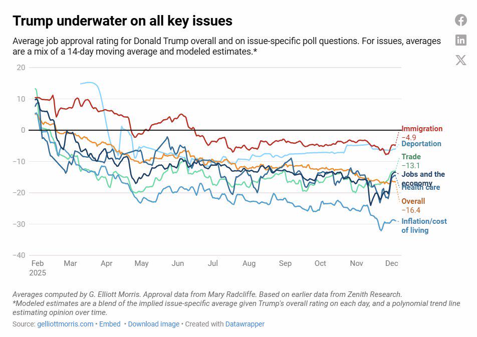 Trump is now underwater in pretty much all key issues