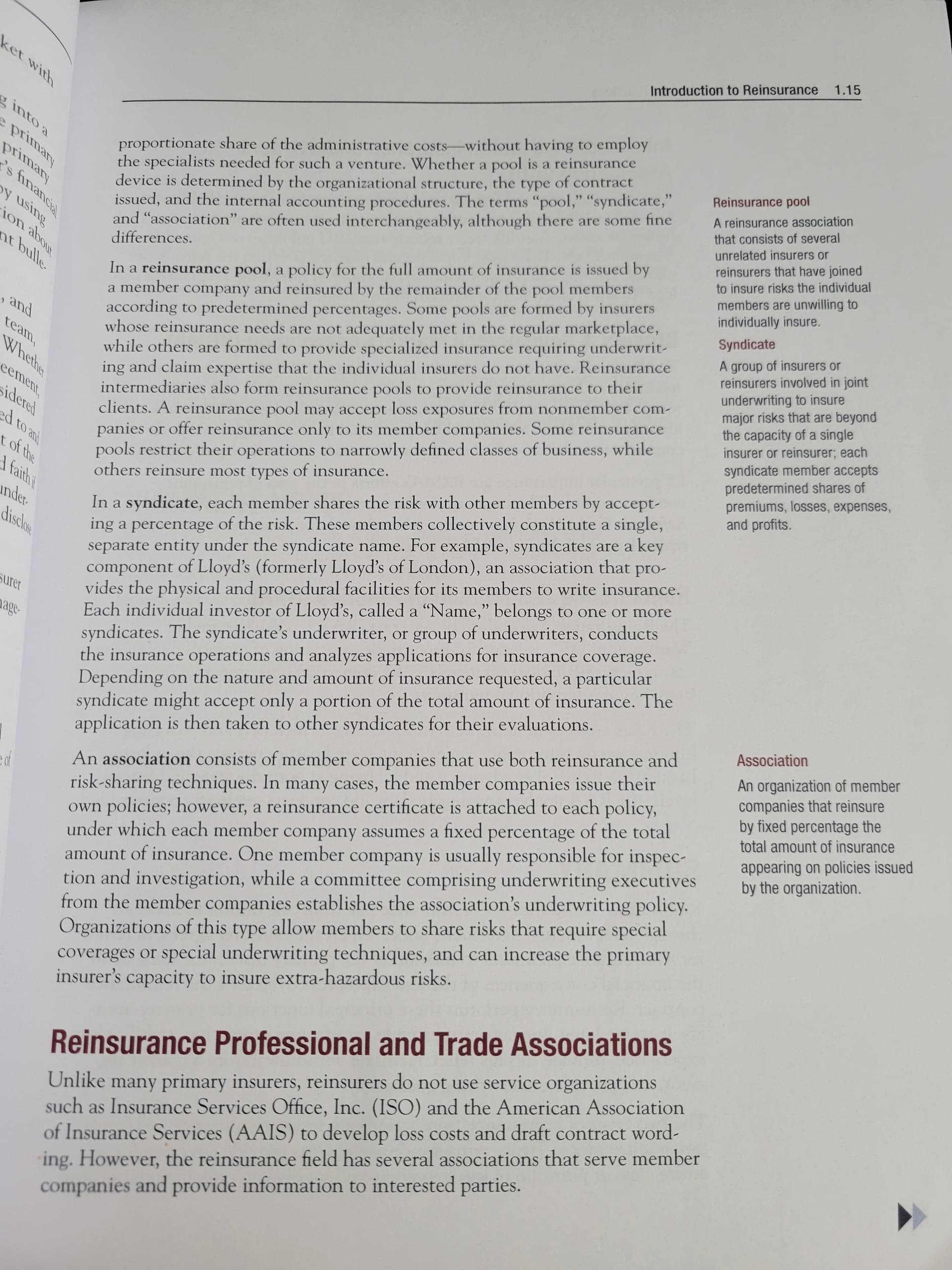 I think I understand the difference between a reinsurance pool and a syndicate, but what’s the difference between a reinsurance pool and a reinsurance association?