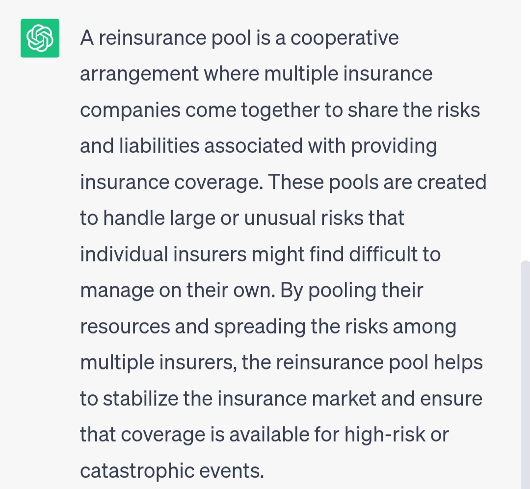Another reinsurance pool arrangement would be regarding nuclear power plants.