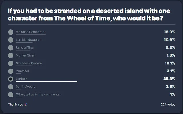 Personally, I’d have chosen Aviendha, but I respect the choice of Lanfear given how she’s portrayed in the show.
