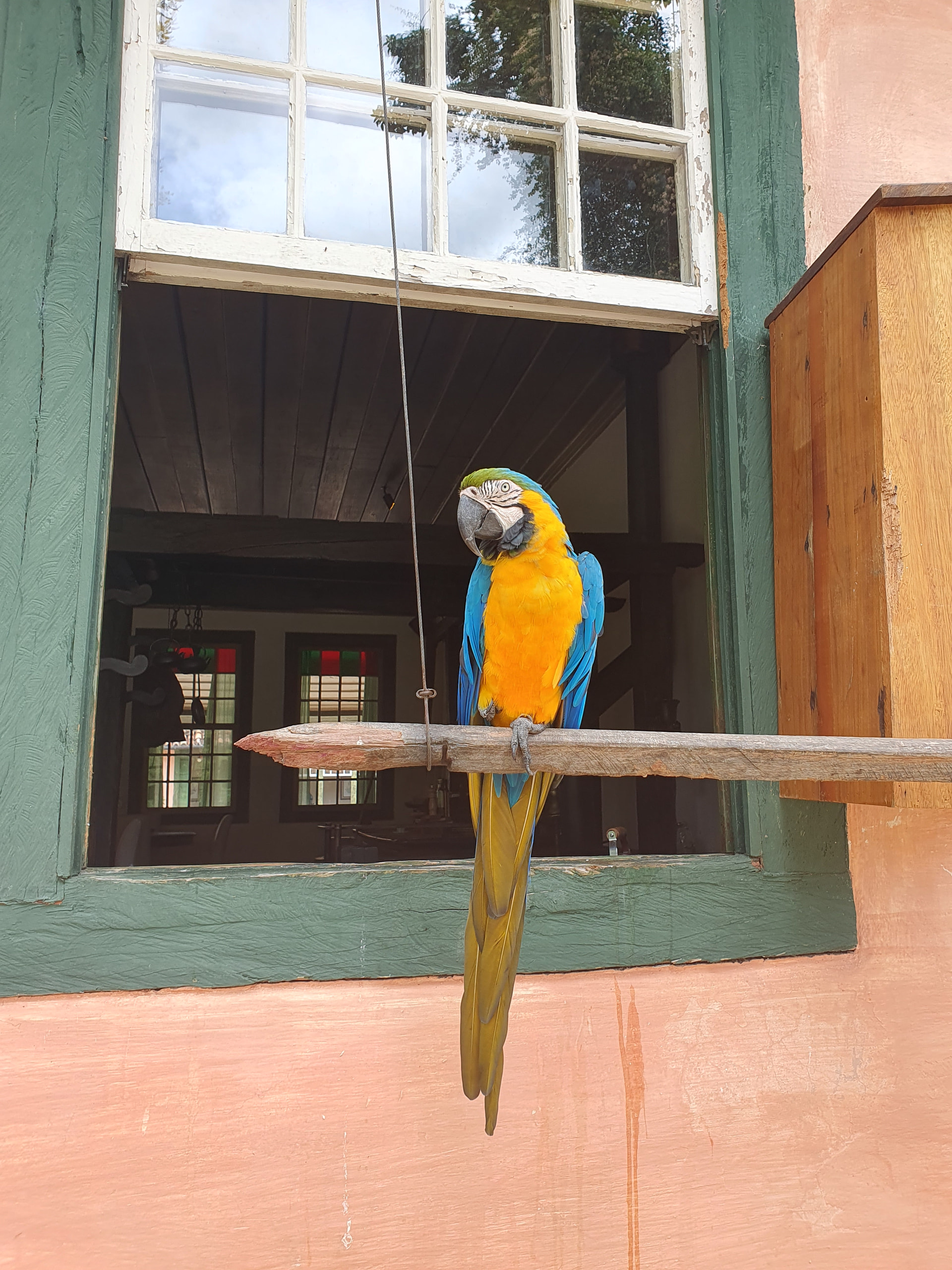 Here is Blue (one of a dozen rescued from illegal breeders and now they let them roam free around the house and grounds). Our 6 year old daughter loved feeding her grapes and bananas (she was very friendly) as they are used to humans now.
