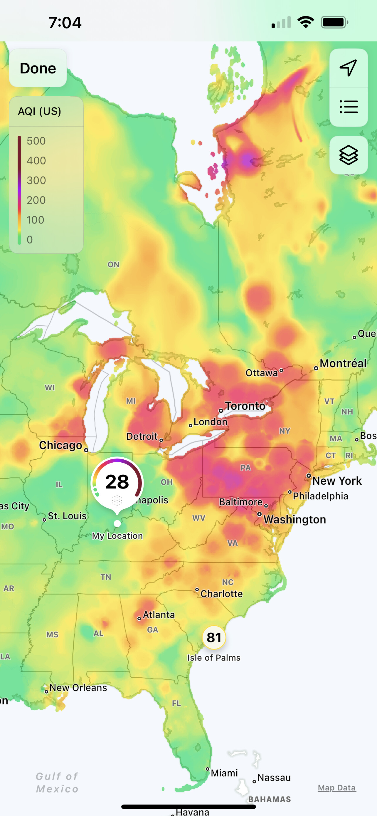 The Apple Weather App air quality map has been an interesting find of mine since this started several weeks ago. The smoke in the atmosphere is an excellent heat map view of the high and low pressure systems. More smoke equals lower pressure and no smoke equals high pressure. Last night a line of storms pushed through the Ohio Valley and you can clearly see the front that pushed them through. Anyway this map is a great tool for seeing where the smoke is at and why it’s there.