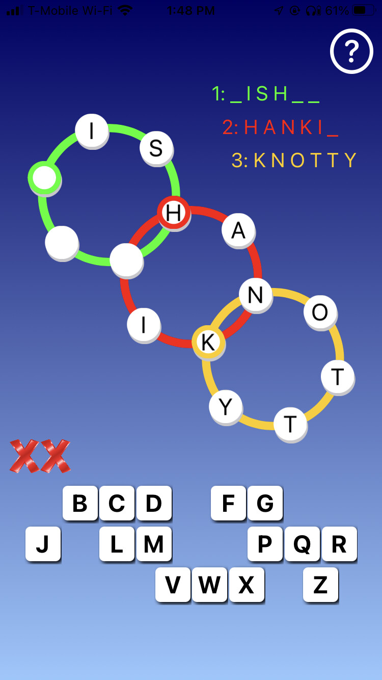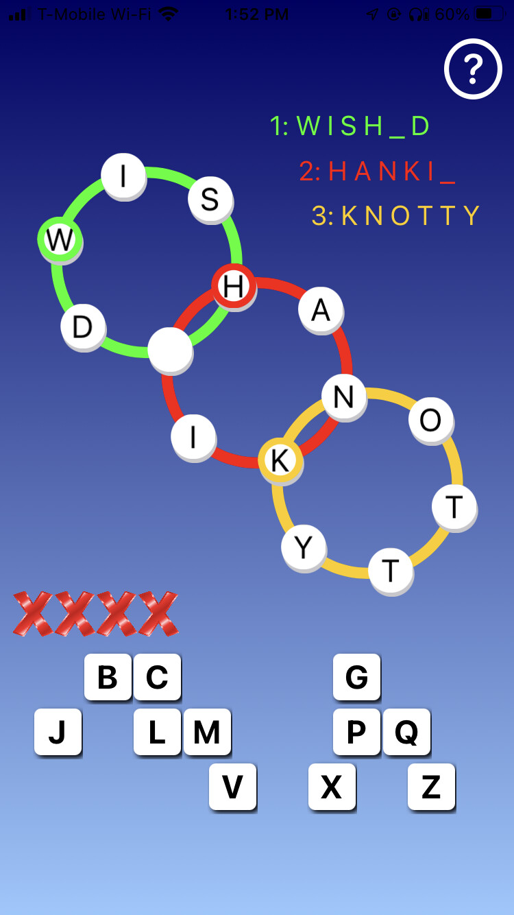 Meanwhile, I’m still confused as to what happened after 4 strikes the first time, then no further game action by me. Did going to another app automatically end the first game? Would just sitting there without changing app just have ending the first game? I’m not sure what I did, including possibly (but don’t think so) closing the app, but I know I did not get a fifth strike the first time.
