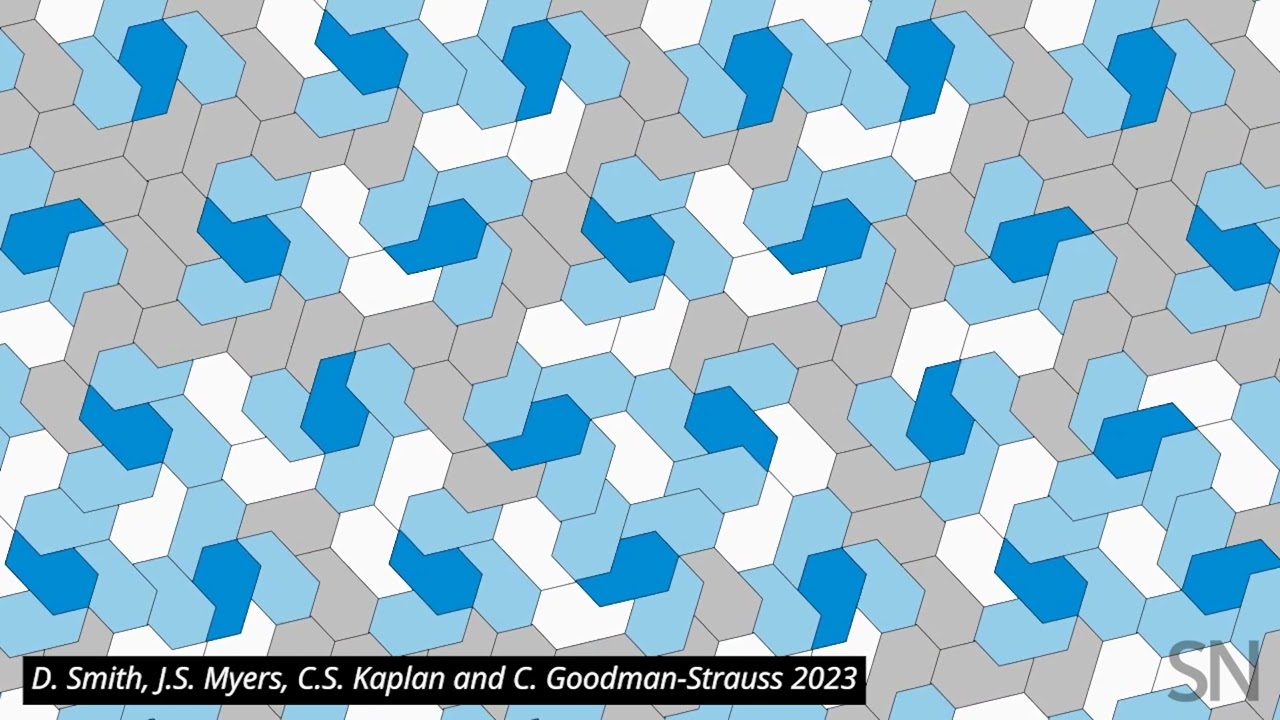 It’s the first true example of an “einstein,” a single shape that forms a special tiling of a plane: Like bathroom floor tile, it can cover an entire surface with no gaps or overlaps but only with a pattern that never repeats.
