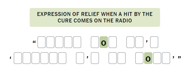 “Expression of relief when a hit by the Cure comes on the radio”